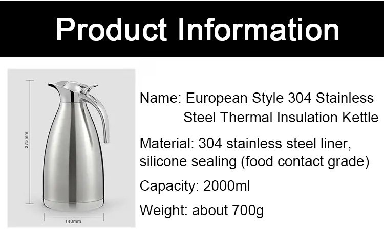 European Style 304 Stainless Steel Thermal Insulation Kettle
